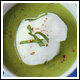 Durch ein Sieb passieren. Dann etwas Sahne dazugeben, mit Salz etwas Zucker und Muskat abschmecken. In Tassen anrichten und mit dünn geschnittenem Schinken belegen.