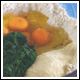 3. Eier, Mehl, Grieß, pürierten Spinat und ?–l in eine Schüssel geben, mit Salz würzen und zu einem glatten Teig verkneten.